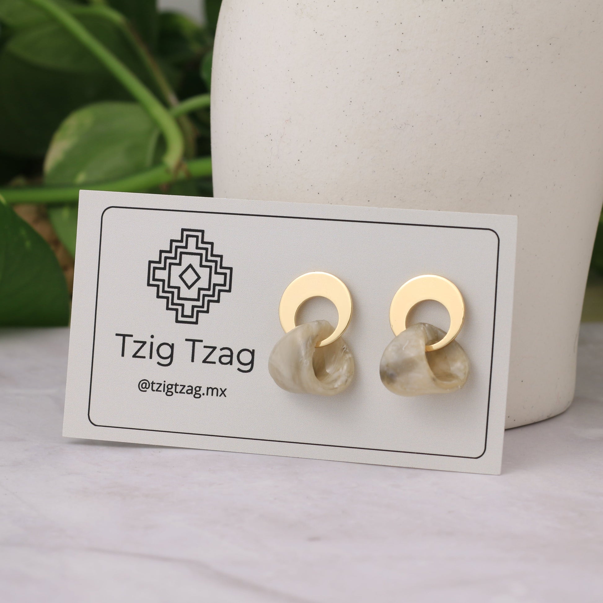 Aretes de arcilla polimérica complementados con pieza dorada en forma de círculo. Tan ligeros que casi no los sentirás, cada par es hecho a mano.
